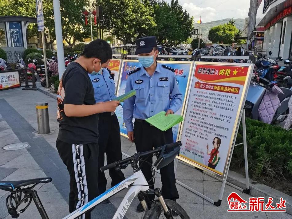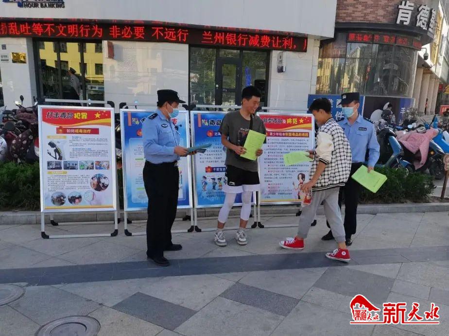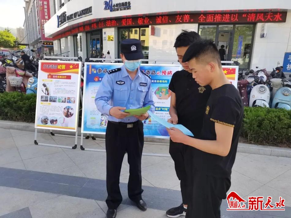 为进一步提高辖区广大群众识毒和防毒能力,不断推进禁毒工作向纵深发展,5月29日,麦积区道南派出所在辖区商业街开展禁毒宣传工作。