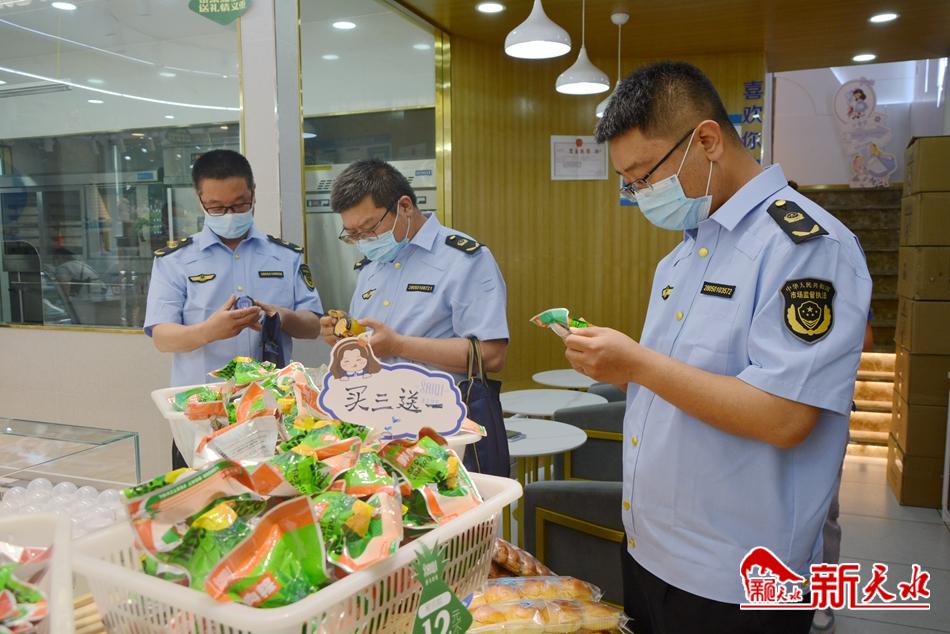 “最近气温升高,食品要严格按条件储存,生产日期、保质期和重量都要在包装上标明,工作人员健康证和食品经营许可证要在有效期内……”检查过程中,市场监管人员按照各自分工,对食品经营者的主体证照资质、索证索票查验、产品标签标识、人员健康管理等情况,督促各食品经营单位严格落实食品安全主体责任,严防不合格食品流入市场。