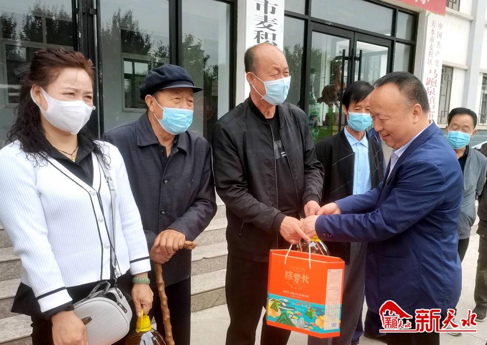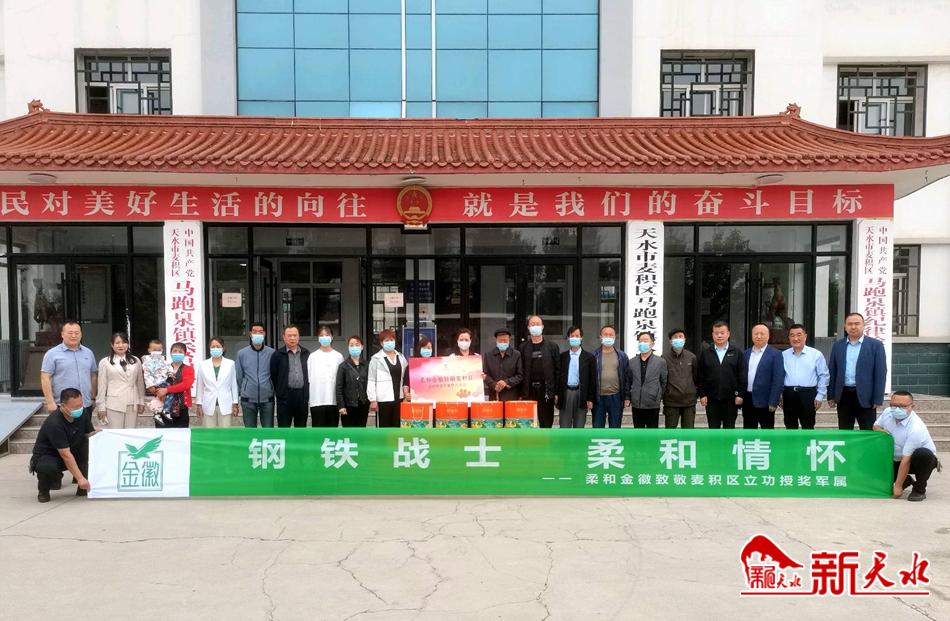 新天水讯【特约通讯员 窦耀辉】6月1日,麦积区退役军人事务局携手爱心企业——金徽酒股份有限公司、天水百诚商贸有限责任公司来到马跑泉镇政府,集中看望慰问了立功受奖现役军人家属,弘扬拥军优属的优良传统,营造全社会尊崇军人、心系军属的浓厚氛围。