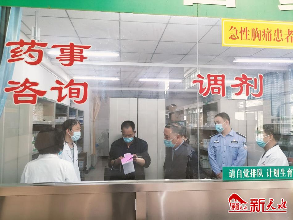 新天水讯 6月1日,天水市禁毒办联合市卫健委、市市场监管局深入秦安县人民医院、中医院督导检查美沙酮门诊建设及精神麻醉类药品管控工作。