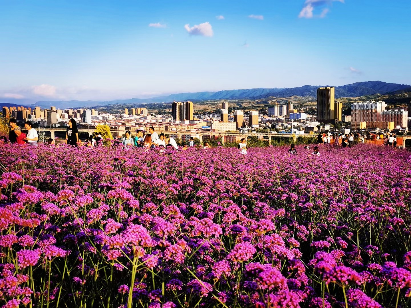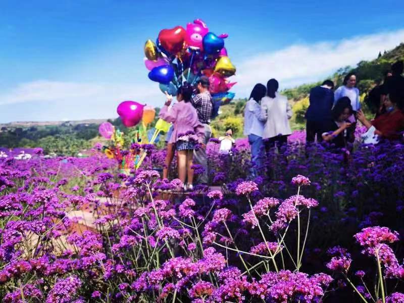 去清水,花舞北山,香怡南塬,置身其间,粉的月季、红的玫瑰、紫的马鞭草,色彩的渐进下,与人面相映,成为拍照打卡的必去之地。