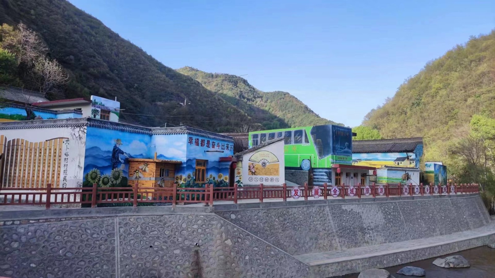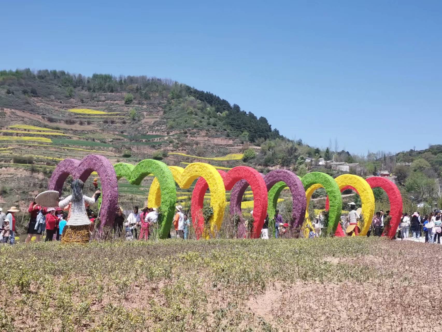 龙台山上,层层叠叠的梯田,与各色花海相映成趣,五彩斑斓拱捧的“网红村”中,刺绣、麦秆画、石头画、剪纸等民间手工艺术,为村子增添了不少文化元素。
