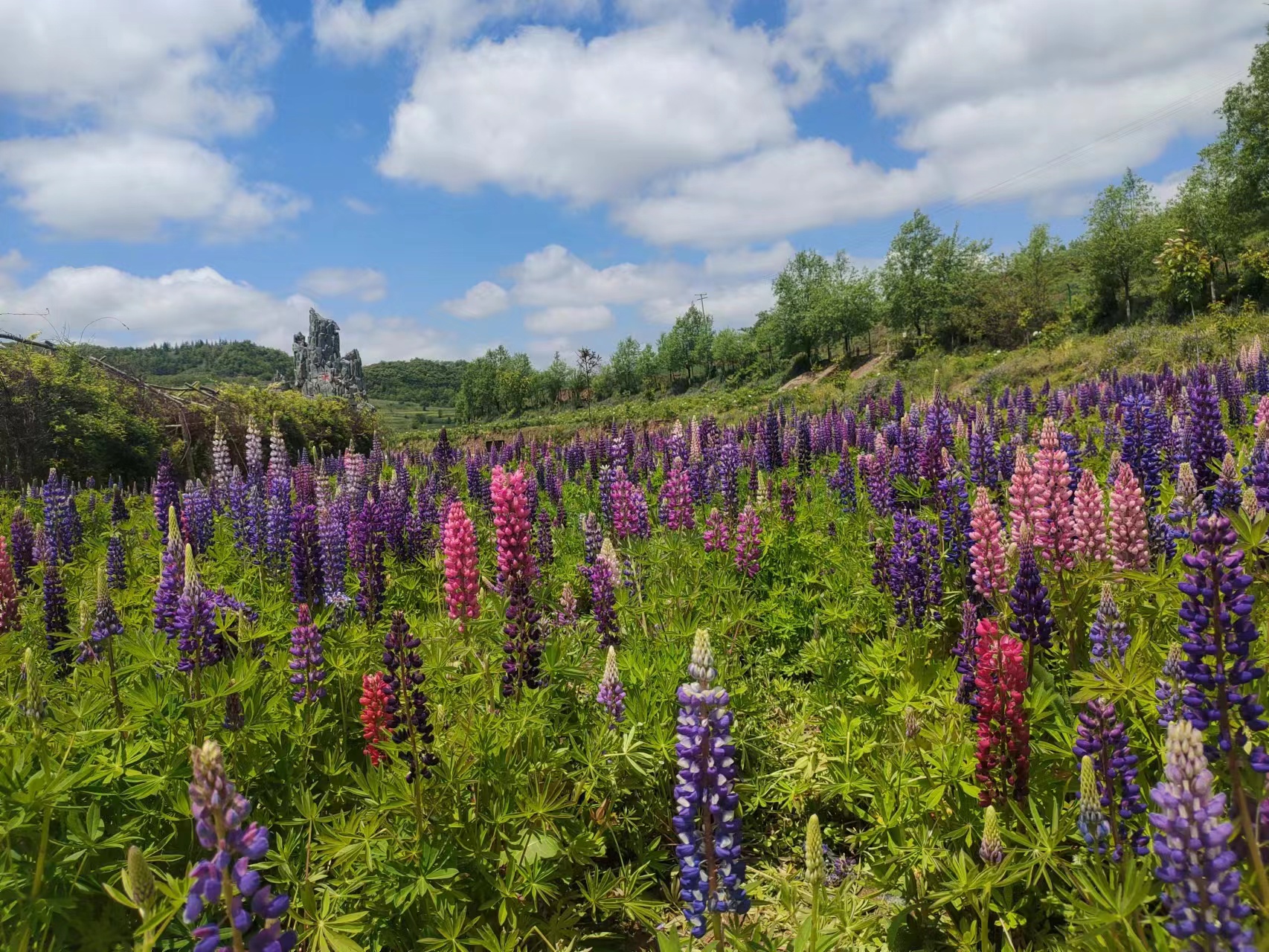 鲁班山上,登高而望,看九龙吐蕊,花开遍野,荡胸生层云,心旷神怡。