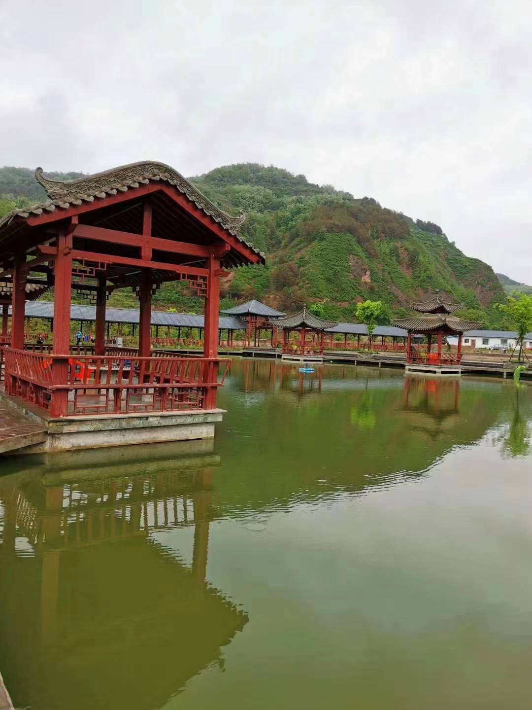 青鹃山旅游度假区,水积春塘晚,阴交夏木繁。泛舟湖面,看垂柳倒影,湖光山色相映,凭栏而望,心旷神怡,置身于美景,真应了“舟行碧波上,人在画中游”。