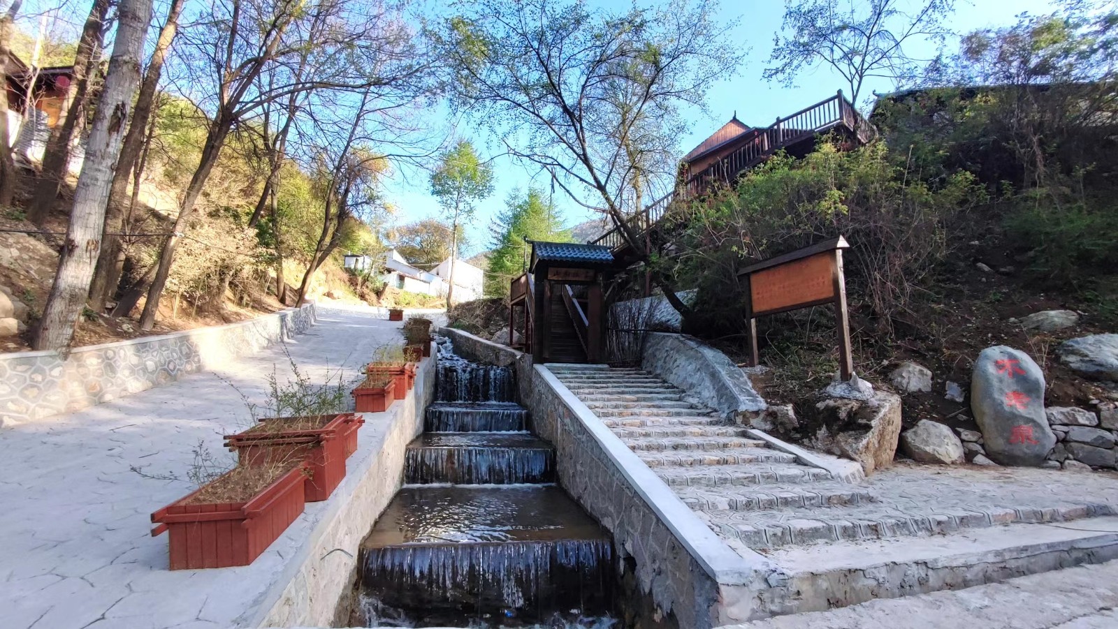 小山村里,清渠一邑,南山悠然,各色野花开满山野,不老泉甘醇香冽,取一捧,烹茶而饮,欢言而憩。