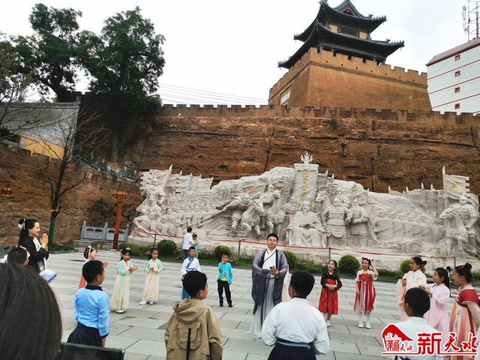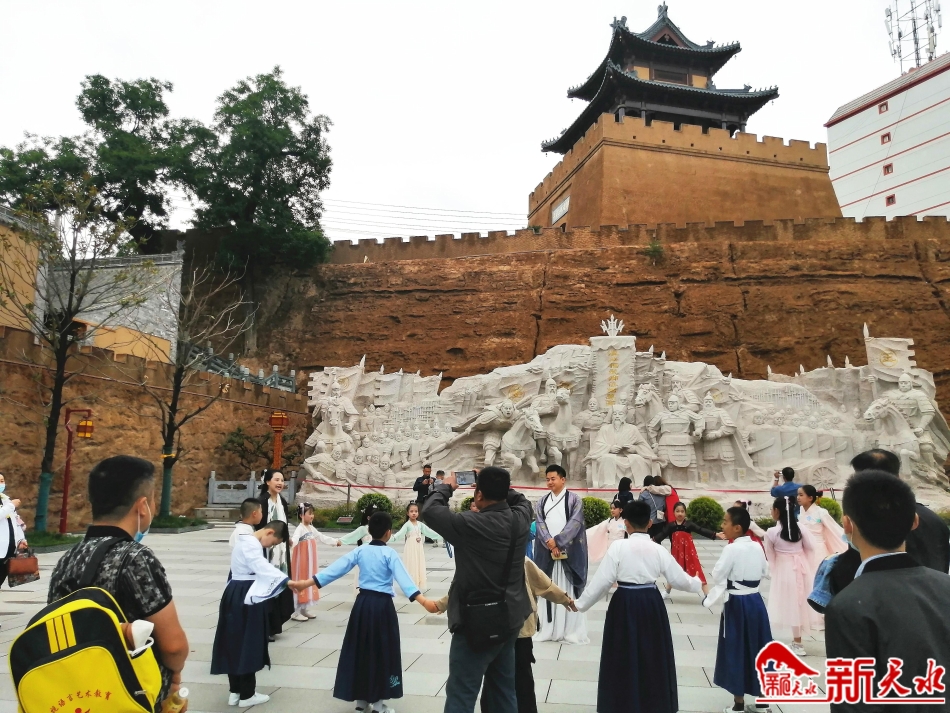 农历五月初五端午佳节,虽然下着濛濛细雨,但是位于秦州区西关里的天水古城景区内游客众多,人们兴致勃勃地带着家人亲友,徜徉在古色古香的古城街巷里,有的还与同学朋友们一起,在天水古城广场表演起了古朴的端午吟诵节目。