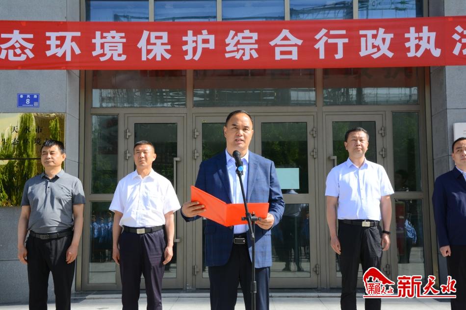 新天水讯【记者马哲】6月5日,天水市举行生态环境保护综合行政执法队着装仪式,标志着生态环境保护综合行政执法队伍规范化建设迈出了历史性一步。天水市副市长胡志勇出席着装仪式。