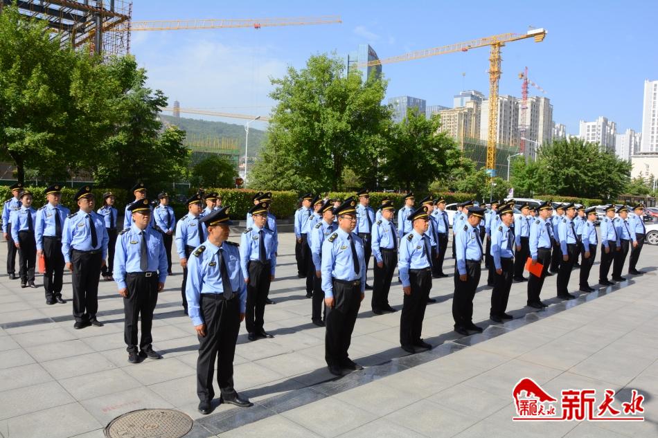 胡志勇强调,全市环保系统要以此次换装为契机,以更加奋发有为的精神面貌,更加求真务实的工作作风,推动全市生态文明建设迈上新台阶。一要展现队伍建设新面貌,认真贯彻落实习近平总书记关于建设高素质生态环保铁军的要求,强化能力培训、实践锻炼、作风建设,着力提升政治能力、依法行政能力、执法业务能力、执行落实能力,以崭新风貌服务全市生态文明建设和经济社会高质量发展大局。二要坚持依法履职尽责,实施执法事项清单管理,完善执法程序、严格执法责任、规范执法行为、提高执法效能、强化执法监督,把严格规范公正文明执法落到实处,不断提升环保执法标准化、规范化、制度化水平,推动执法工作实现新突破。三要充分发挥生态环境执法队伍“主力军”作用,深入打好污染防治攻坚战,全力保障重大项目建设,积极创建全国文明城市,努力让天水的环境“颜值”越来越高、生态“气质”越来越好,为建设区域中心城市,推动老工业基地走出高质量发展新路子作出新的更大贡献。