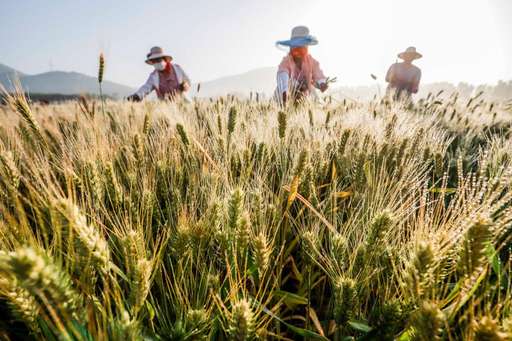 6月5日,河北省遵化市刘备寨乡安各寨村农民在麦田去除杂穗。新华社发(刘满仓摄)
