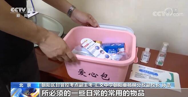 北京朝阳区封管控考点副主考 北京汇文中学朝阳垂杨柳分校副校长 孙浩:我们现在所到的这个位置就是管控区考生的生活区,这个是我们为考生准备的爱心包,为学生配备了一些生活上所必需的一些日常的物品,比如像牙刷、牙膏、毛巾、有酒精的消毒湿巾等。在入住期间我们还有驻点的校医、防疫的副主考、999的医护人员,所以这块也是请广大考生可以放心的。