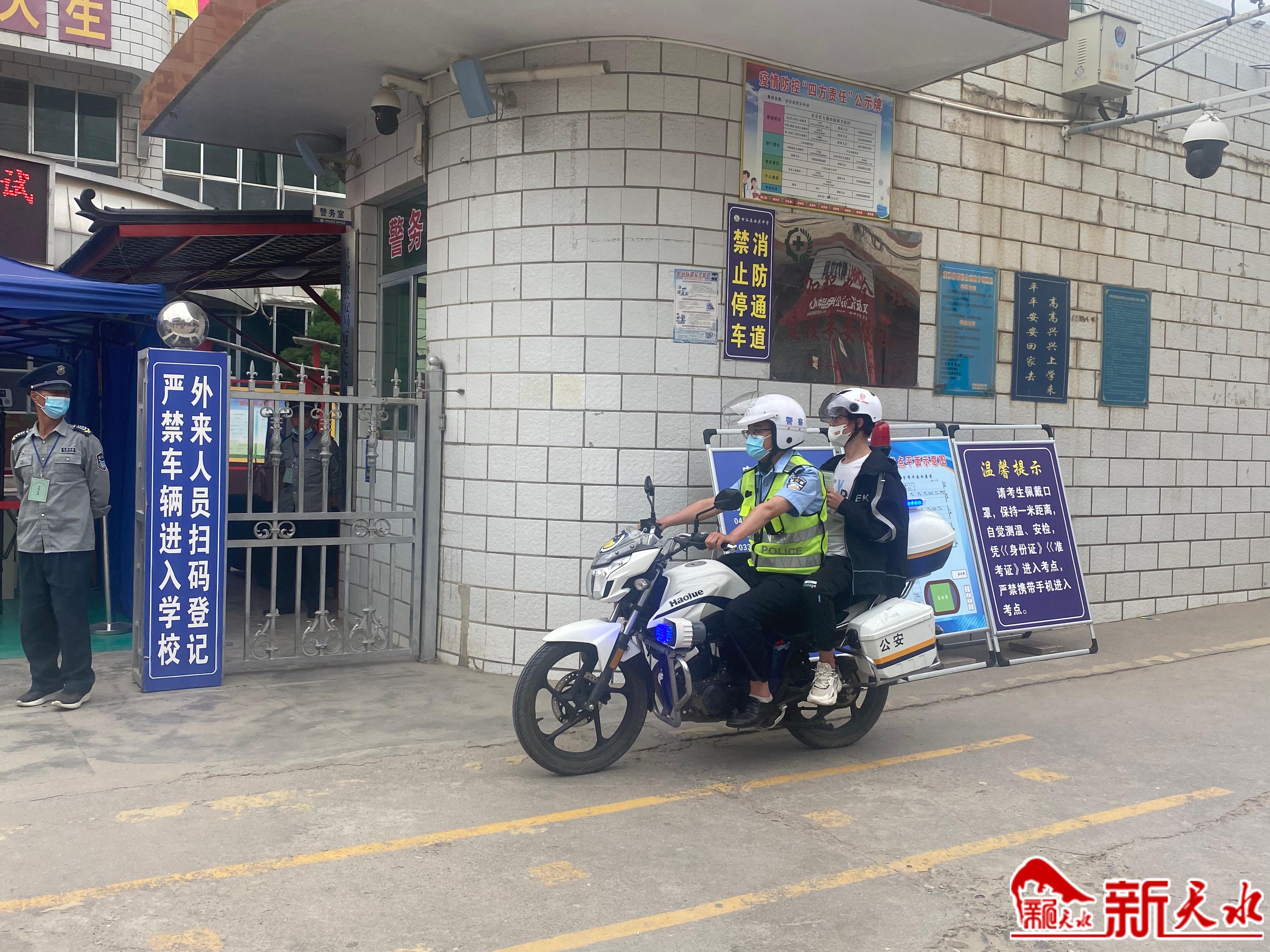 6月7日8时30分,甘谷县公安局交警大队城区中队快骑队队员在甘谷县西关中学高考考点值勤时,接到一名考生求助,称自己的身份证忘带了。快骑队队员蒋豪杰得知情况后,让考生戴好头盔,乘坐警用摩托车驶往南关路,在拿到身份证后又将考生送回西关中学高考考点,确保了考生顺利进入考场参加考试。