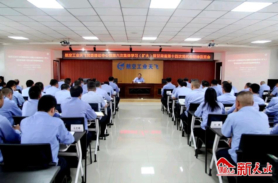 新天水讯 6月2日,航空工业天飞公司召开党委理论中心组第六次集体学习(扩大)暨甘肃省第十四次党代会精神宣贯会议。甘肃省第十四次党代会党代表、天飞公司党委书记、董事长田维军宣讲省第十四次党代会精神。