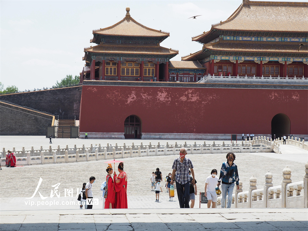 2022年6月7日,北京,故宫博物院恢复开放。据了解,开放期间,故宫按照75%限流,游客须持有72小时核酸检测阴性证明,配合测温和健康宝查验。杜建坡摄(人民图片网)