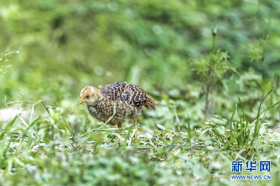 在重庆市南川区金佛山国家自然保护区,红腹锦鸡小宝宝在觅食。新华网发(瞿明斌 摄)