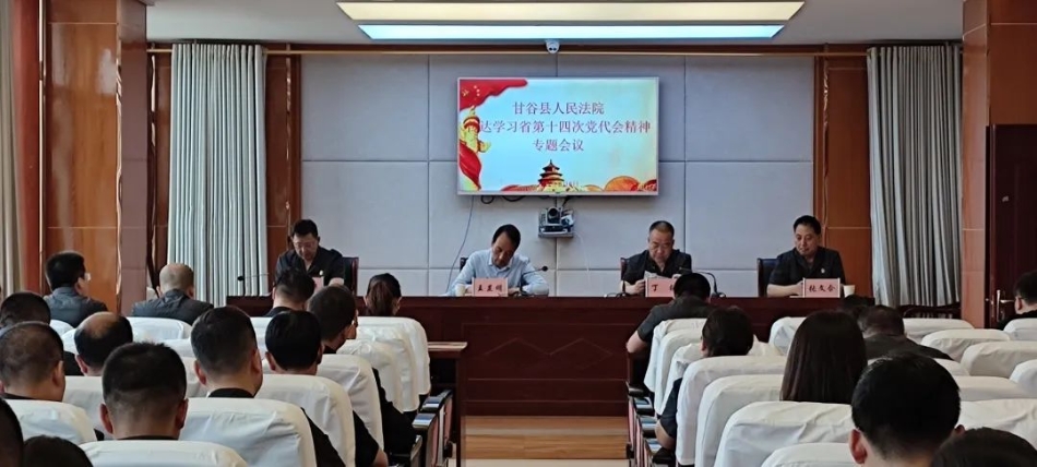 新天水讯【记者蔚军平】6月6日,甘谷县法院召开专题会议,传达学习省第十四次党代会精神,安排部署学习贯彻工作。