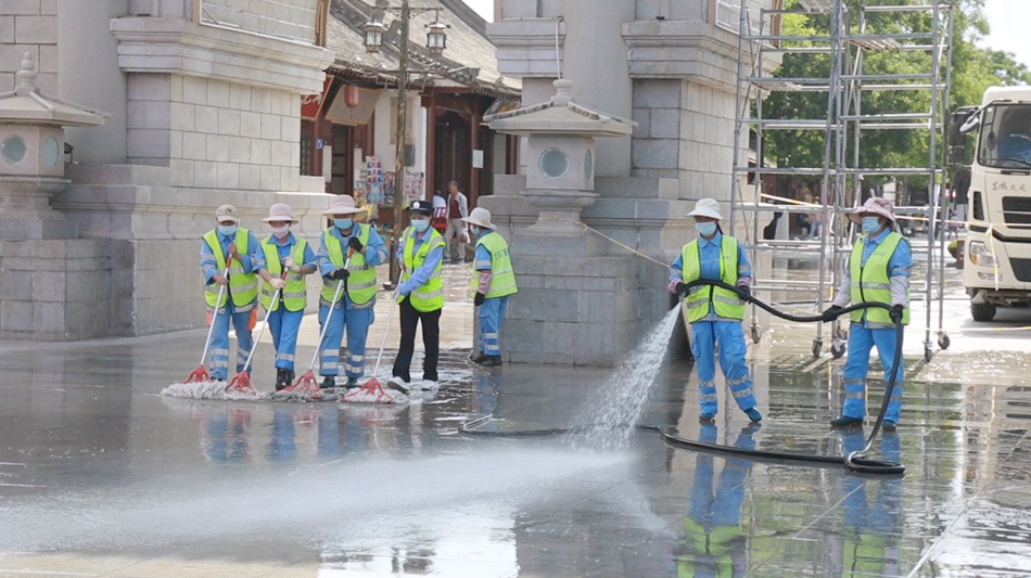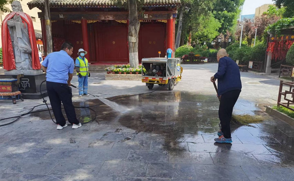 “洗路净城”提升城市颜值。为助力全国文明城市创建,达到“全覆盖、见本色、无积尘”精致化管理效果,区环卫中心在持续精细化清扫保洁作业的基础上,出动1000余名环卫人全面开展“洗路净城”行动。对城区主次干道的机动车道、人行道、护栏、公交车站牌、休闲座椅、果皮箱及周边路面、灯箱、宣传牌匾等“城市家具”进行除尘擦拭,全方位消除市容环境盲区死角。同时避开交通高峰期出动清扫车、洒水车进行机械保洁,达到降尘增湿效果,努力为市民打造洁净靓丽的市容环境,以实际行动迎接伏羲文化旅游节。