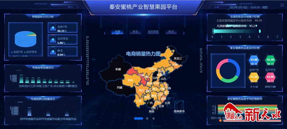 该县现代蜜桃产业中心示范区,有病虫情检测仪、果树生长监控系统、土壤墒情监测、智能气象监测,新建智慧果园大数据控制中心、果园智能服务平台。安装在果园里的传感器和气象站会把温度、湿度、光照、雨量、风向、风速、二氧化碳等数据实时传输到控制系统,实现自动监测。同时,虫害、墒情、气象等也能实现实时监测,甚至相关设备的工作状态,以及市场价格波动情况都可在线实时查看,做到“全视野”俯瞰。 现代蜜桃产业智慧果园将现代信息科技和智能化的装备与果园生产的各个环节深度融合,实现了定量决策、精准投入和数字智能化管理,提高了生产水平,真正将科技服务农业落到了实处。