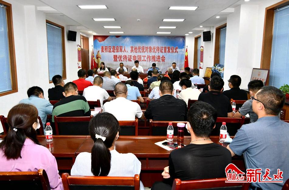新天水讯【特约通讯员 窦耀辉】 6月9日,麦积区举行退役军人、其他优抚对象优待证首发仪式暨优待证申领工作推进会。会议通报了全区退役军人、其他优抚对象建档立卡和优待证申领工作进展情况;渭南镇、邮政储蓄银行麦积区支行有关负责人分别作了表态、交流发言。