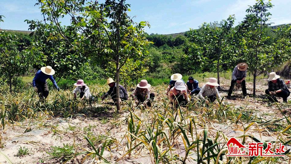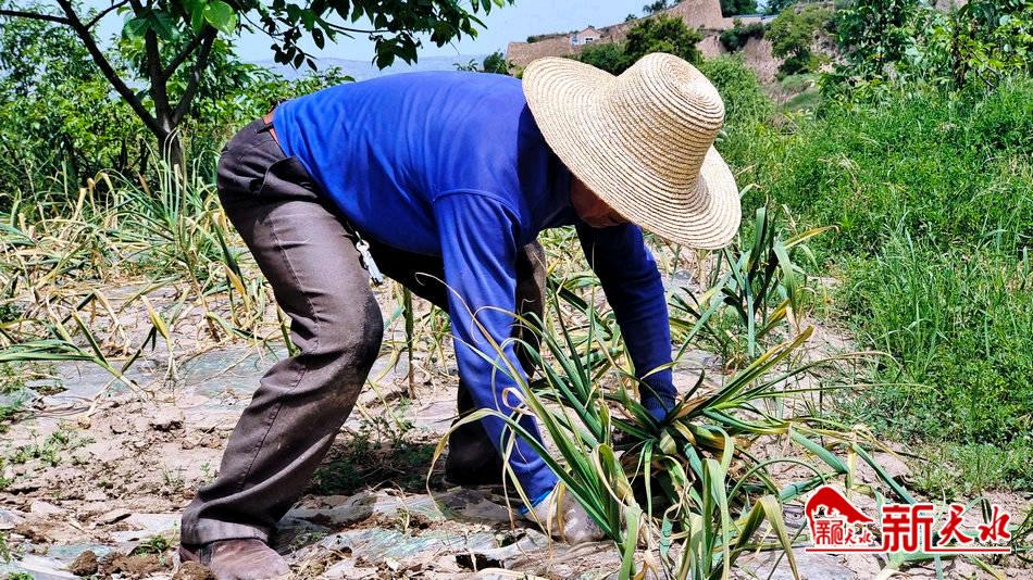 新天水讯【通讯员 刘琰 马蓉蓉】目前正是大蒜丰收的时节,在张家川县梁山镇阳洼村的大蒜田里,蒜农们他们熟练地挖蒜、捆蒜、剪蒜,忙得不亦乐乎。
