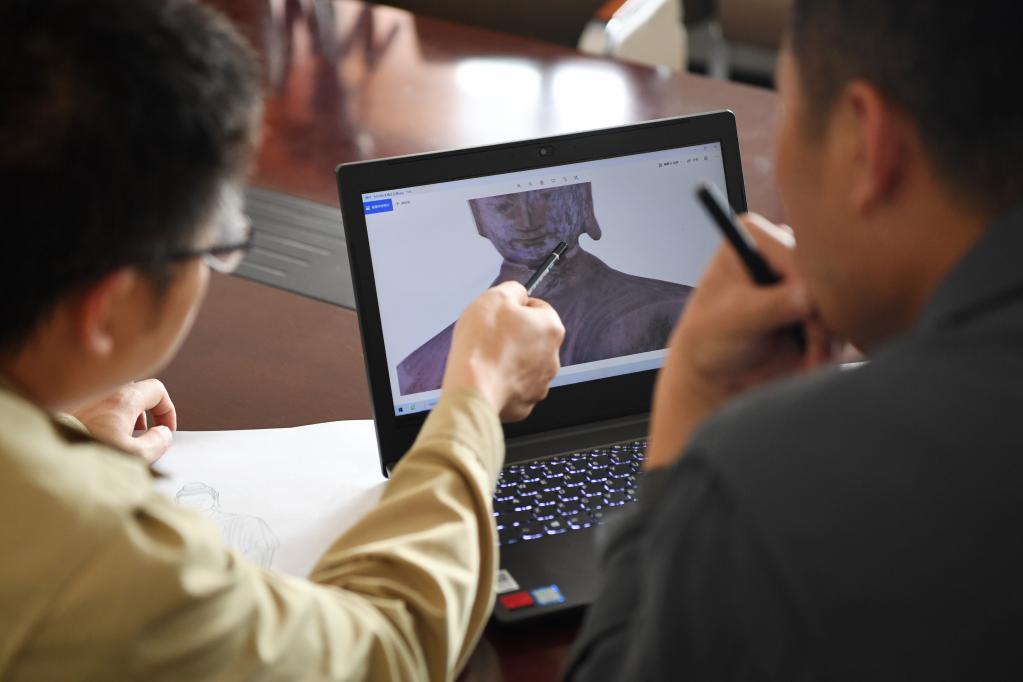 相比摄影,测绘工作更具挑战。麦积山石窟造像历经千年,塑像本身呈现非常复杂的样貌。由于没有相关知识储备,测绘人员对塑像的理解难免流于形式。“这层衣服是北朝时期的,上面这层是隋朝的。不能简单地混同处理,要对不同历史时期的遗存信息准确判断和区分。”张铭和他的团队经常和绘图人员进行沟通,力求完美。