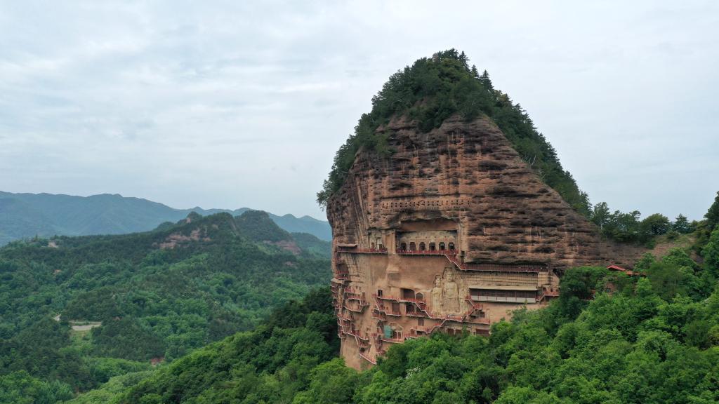 ▲这是6月9日拍摄的麦积山石窟(无人机照片)。新华社记者陈斌摄