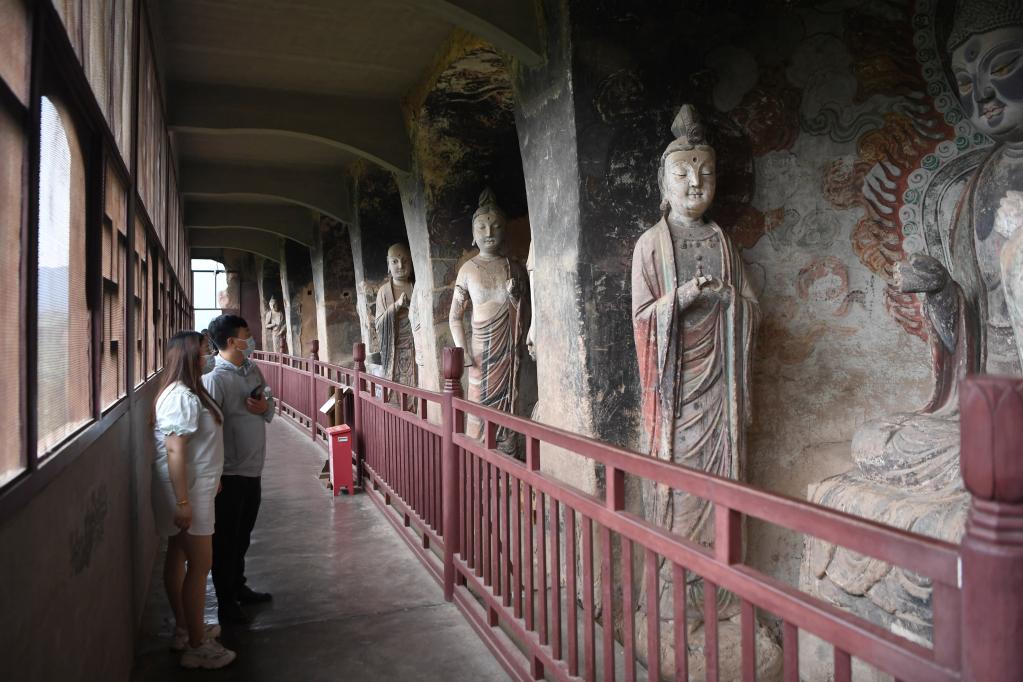 ▲游客在麦积山石窟第9窟参观(6月9日摄)。新华社记者陈斌摄