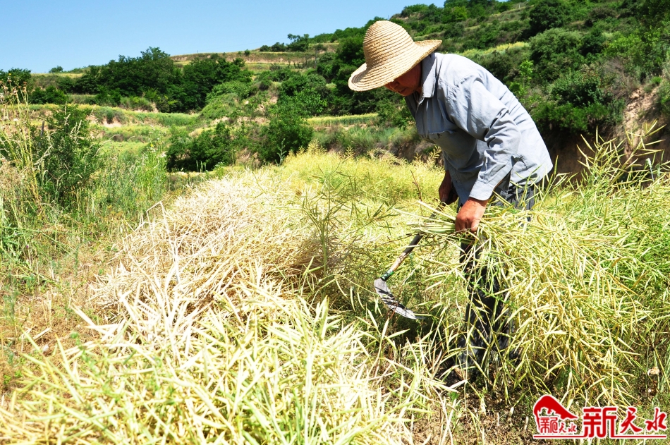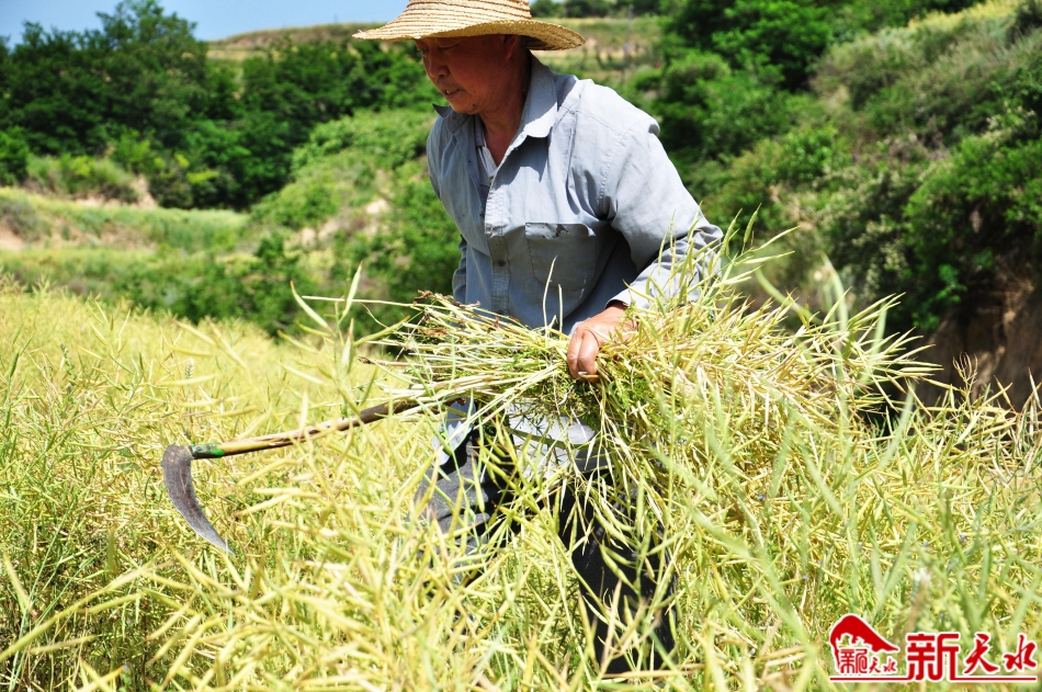 6月12日,秦州区皂郊镇峡门村,村民正在收割油菜。