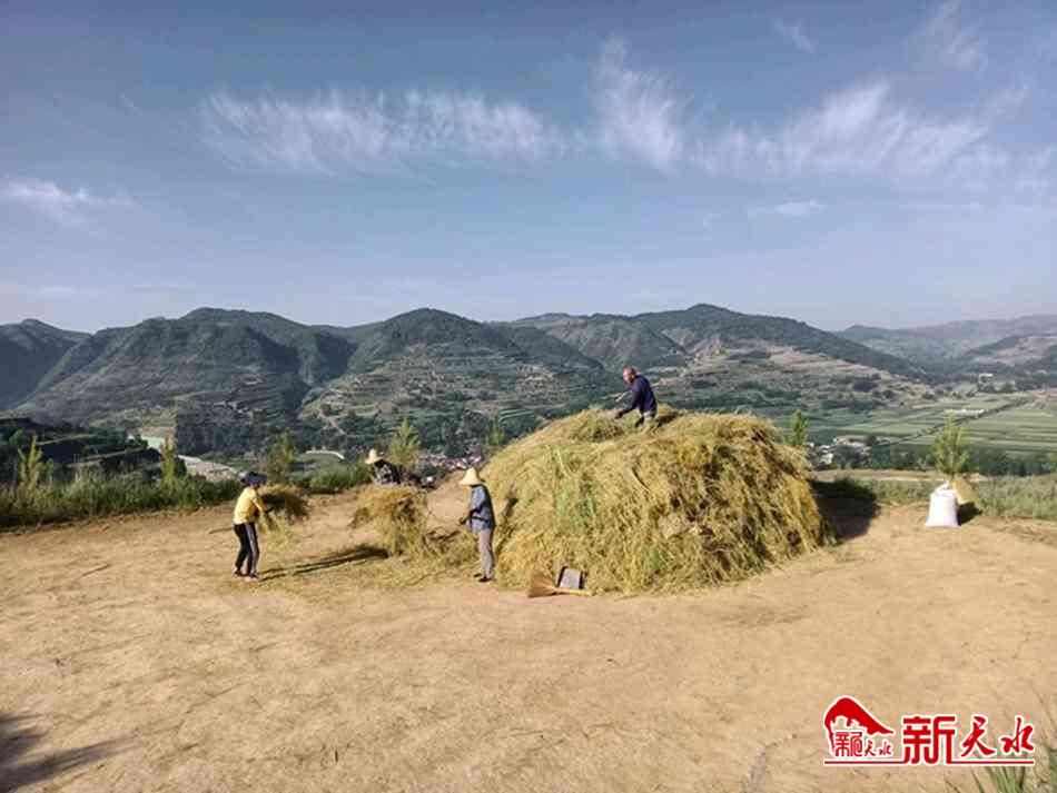 新天水讯 炎炎夏日,清水县黄门镇王店村油菜籽迎来了丰收。村民们正在如火如荼的在田地里动用机械和劳力开展油菜籽收割,成为了夏日里一道亮丽的风景线。