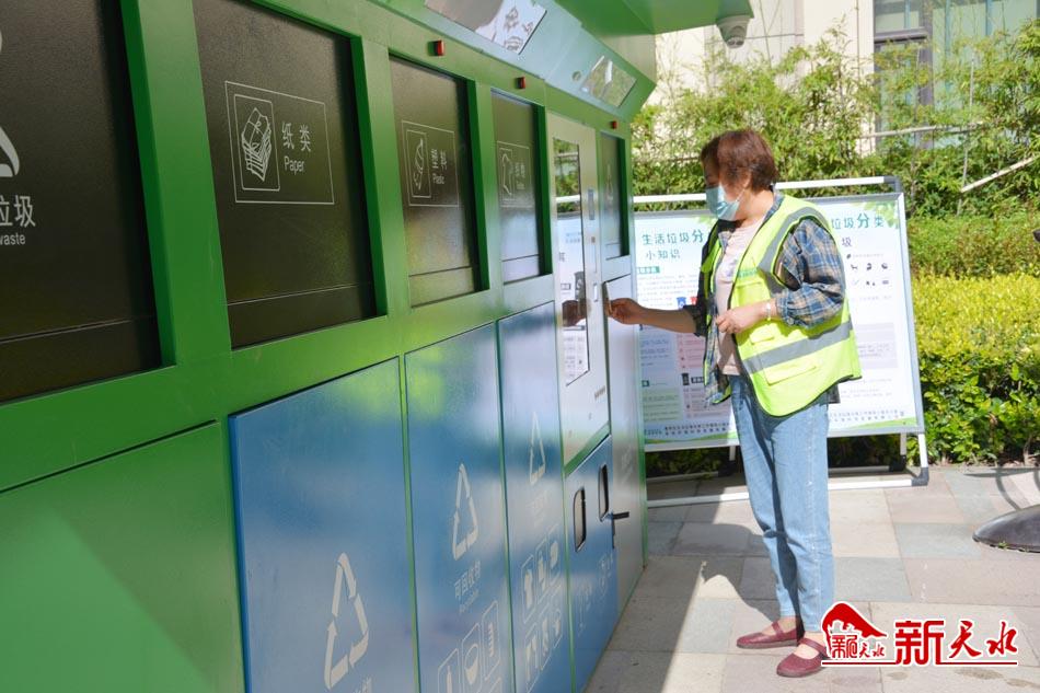 和印象中臭烘烘的垃圾桶不同,智能垃圾回收箱不仅外部干净整洁,没有异味,还有一位帮着居民们进行垃圾分类的督导员。“我在这里工作一年半了,试点垃圾分类之初,很多居民不理解、不习惯,现在大家对垃圾分类的接受度和认可度都高了很多,大都会自觉进行分类,小区的环境卫生也大幅度提升。”督导员张瑞红说,每天上下班投放时间,她都会帮助居民进行分拣和清扫,等待垃圾车定时分类清运。