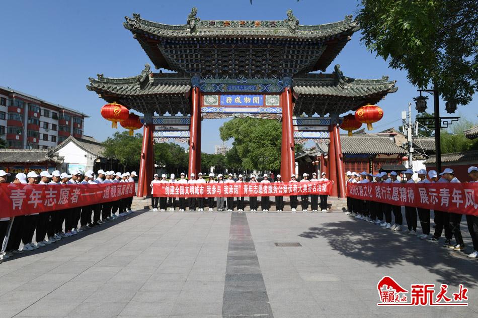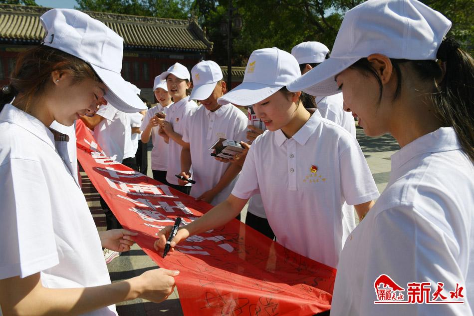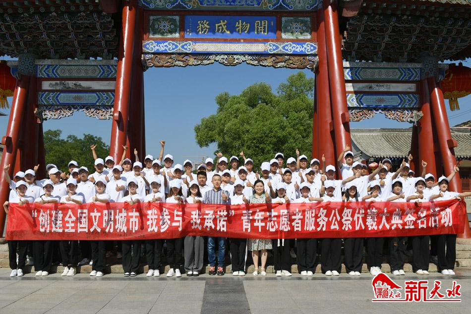 6月15日,“创建全国文明城市,我参与、我承诺”青年志愿者服务公祭伏羲大典签名活动在伏羲广场举行。