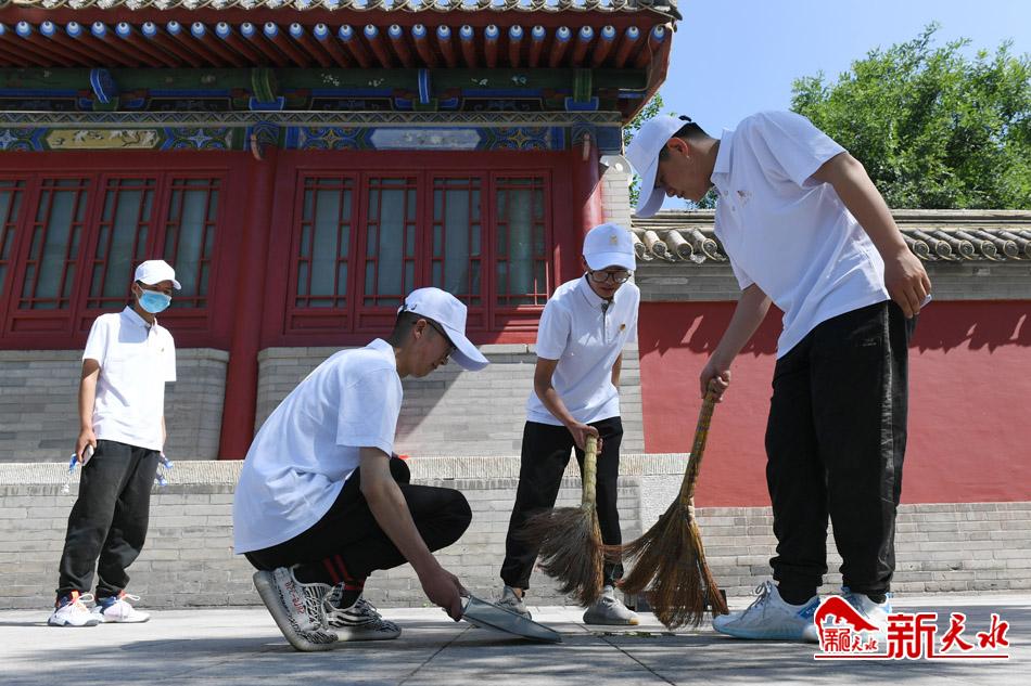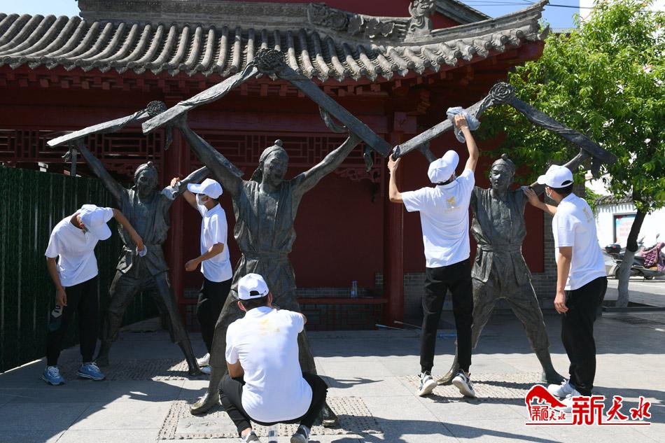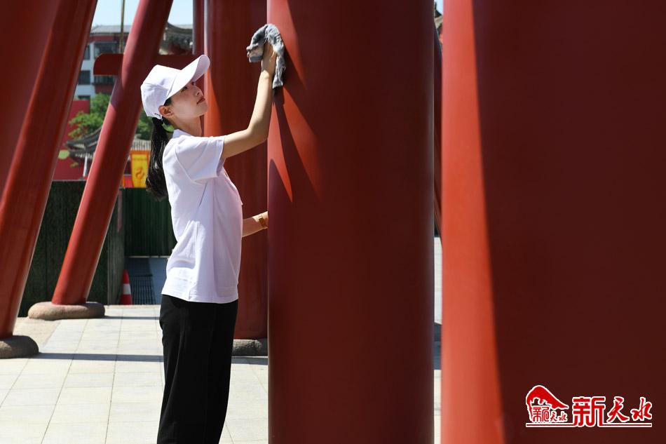 当日,由甘肃工业职业技术学院100名学生组成的志愿者服务队现场签名承诺,并对伏羲城东西牌坊、廊庭、墙面进行了彻底清扫。