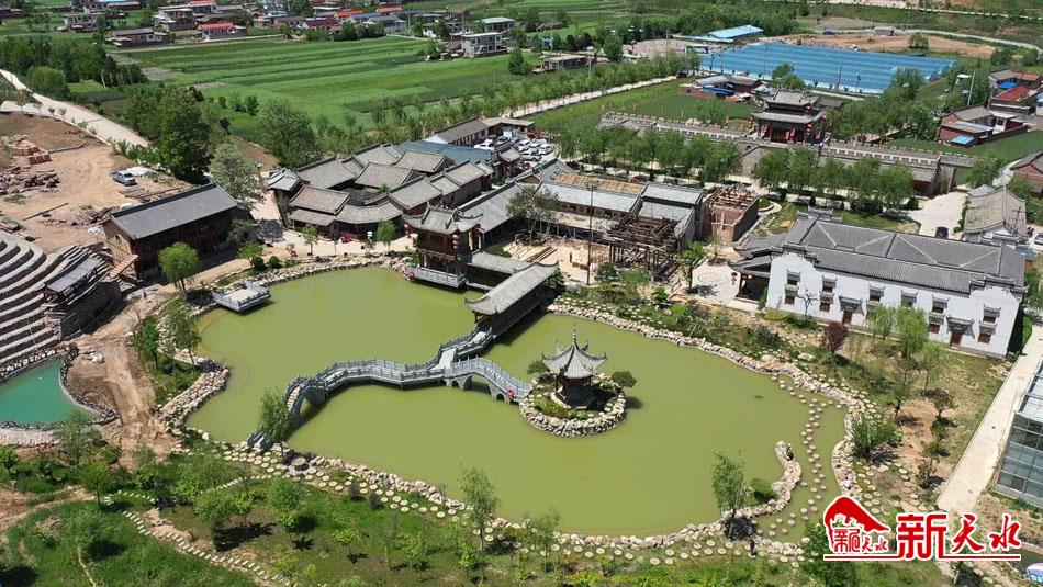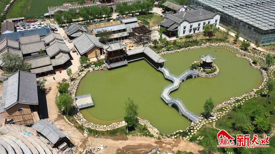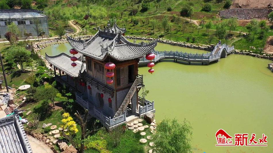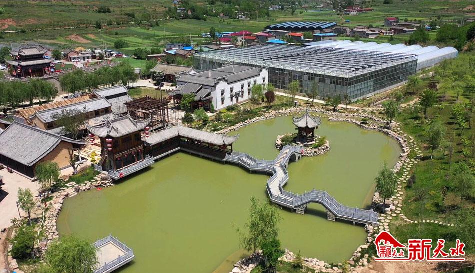 6月15日,从空中俯瞰秦州区平南镇苏湾村民俗田园综合体,只见水色澄碧、杨柳依依,亭台楼阁点缀其中,美不胜收。