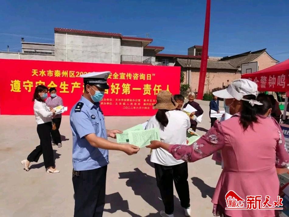新天水讯【特约通讯员 李富军】6月14日上午,天水市秦州区2022年“安全宣传咨询日”活动在太京镇甸子村文化广场举行。