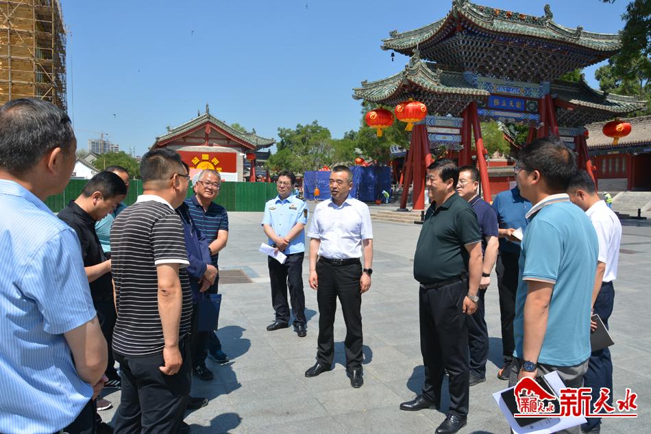新天水讯【记者蔚军平】6月15日,节会组委会环境整治工作部负责人带领秦州、麦积两区以及市住建局、市综合执法局、市交通运输局、市工信局等成员单位负责人,对城市环境整治工作进行检查,就进一步完善做好后续各项工作、全面保障公祭伏羲大典进行了再安排、再部署。