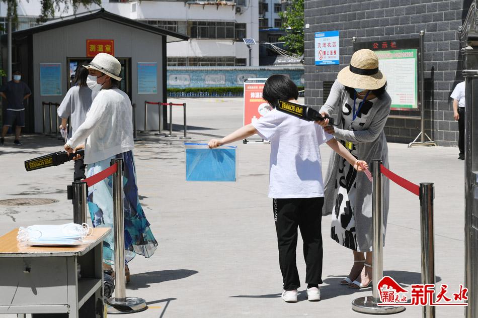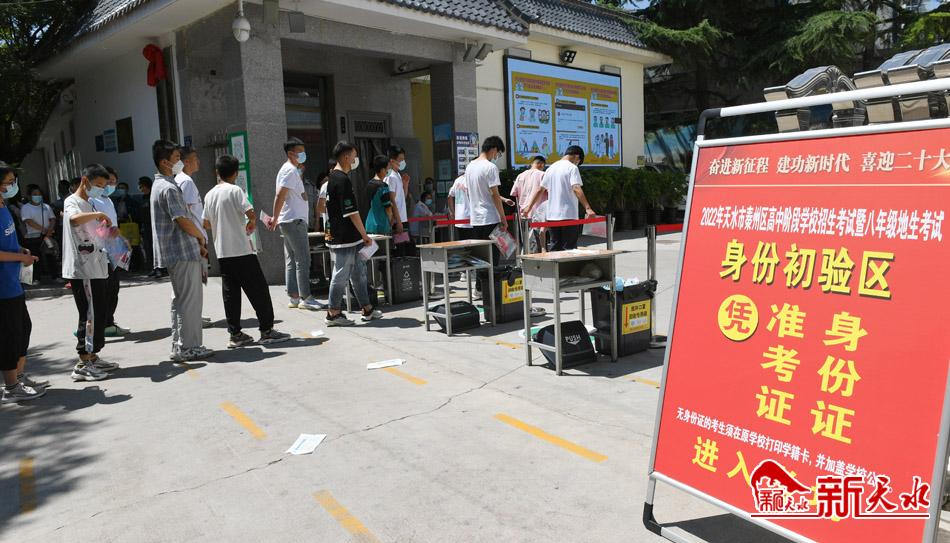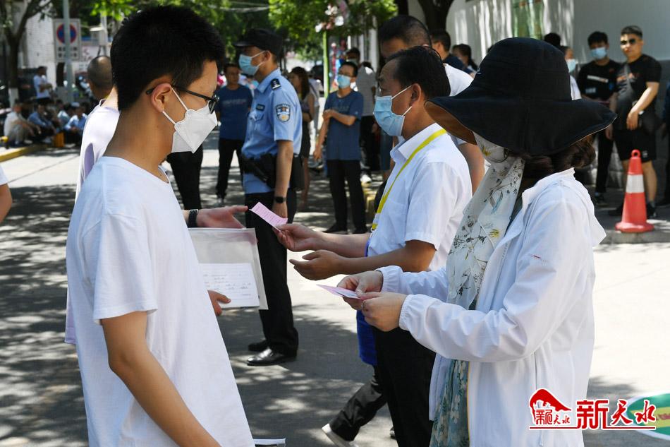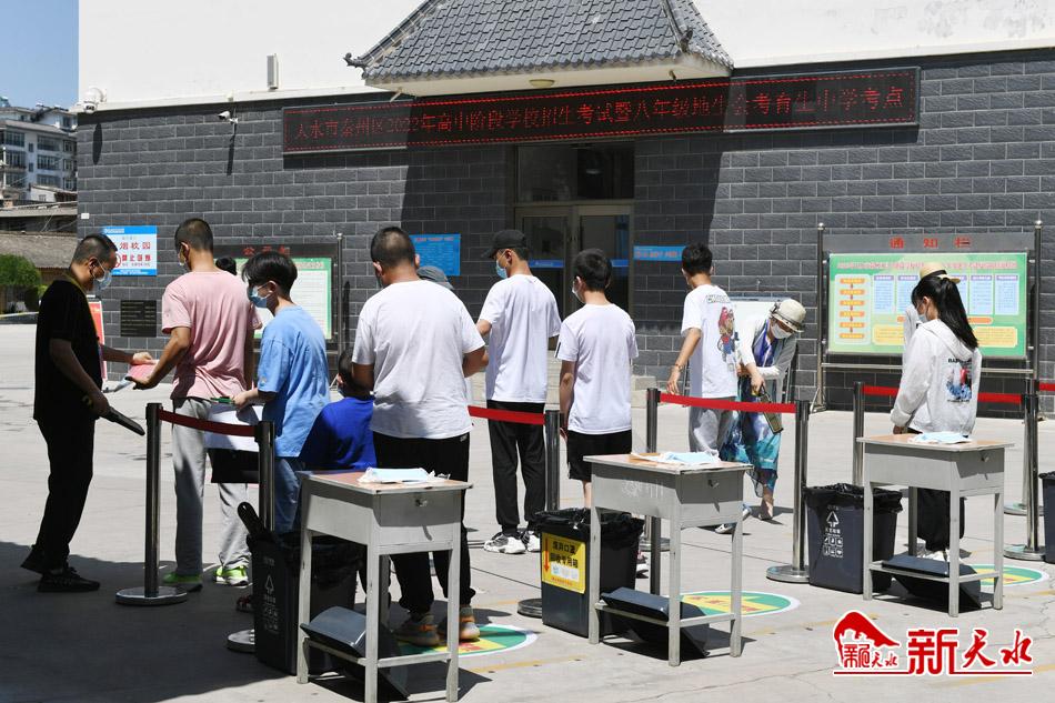 6月16日,在天水市秦州区2022年高中阶段学校招生考试育生中学考点参 加中考的考生有序进入考场。