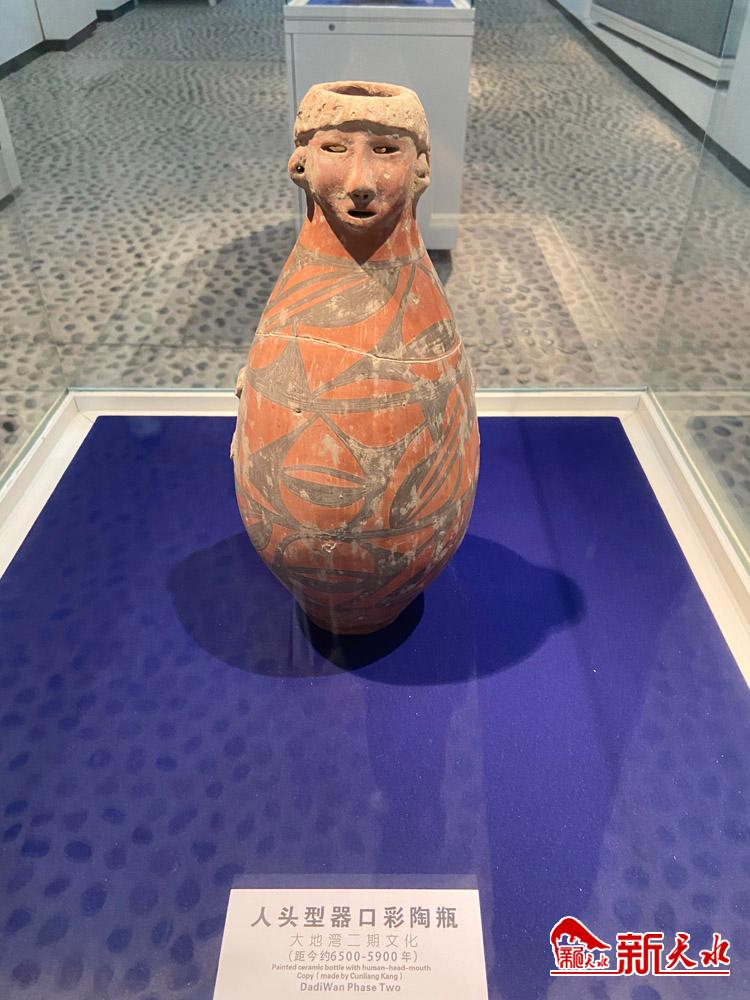 隔着玻璃橱窗,形如绣花针大小的6个“骨针”整齐排列,磨制得光滑精美。在另一侧,“梳着齐刘海”的彩陶人头瓶则体现着6000多年前先民们的审美和艺术思维。她两耳穿孔,口目镂空,显得生动有趣,被评为国家级珍宝。然而,让人最觉神秘的却是一幅用黑色颜料绘制而成的中国最早的地画作品,虽然粗犷古朴,但寥寥数笔却绘出了一幅生动的画面,不少专家都撰文解析这幅地画的内容。