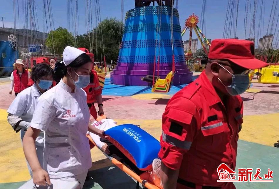 新天水讯【特约通讯员 管文婷】 6月16日,麦积区市场监督管理局在麦积区爱马欢乐世界组织开展大型游乐设施突发事故应急救援演练。