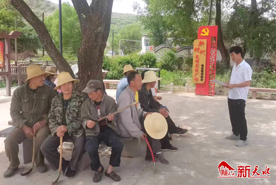新天水讯【记者余碧波】“省党代会报告有高度、有深度、有温度,提出‘坚决扛牢保障粮食安全的政治责任’‘全力推动农业高效发展’‘深入实施乡村建设行动’‘推进健康甘肃建设’等一系列部署,这些都是我们农村、农民、农业、乡村振兴的福音……”在武山县榆盘镇河程村老党员丁启文家的庭院里,支部书记和党员群众围坐在一起,用通俗易懂的语言,为大家领学省第十四次党代会精神丰富内涵,鼓励乡亲们坚定发展信心,一心一意跟党走,共行致富路。