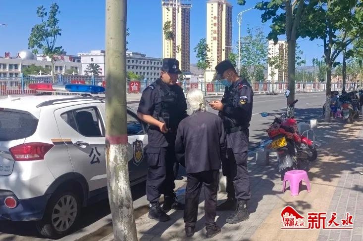 新天水讯【记者蔚军平】6月14日,甘谷县一位八旬老太出门后忘记了回家的路,甘谷县公安局特巡交警大队队员在巡逻途中得知此事后,经过多方打听,最终将老人安全送回了家。