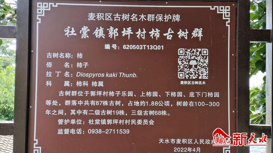 近年来,郭坪村在推进生态文明建设中,对村内古树实现挂牌保护的同时,因势打造乡村旅游景点,既保护了古树名木,又助推了乡村振兴。 “我们郭坪村现有柿子树是105棵,有200年历史的有87棵。为了更好地保护这些古柿子树,我们今年联系了相关部门,对我们的这87棵古柿子树进行了挂牌。同时,以古树保护为基础,我们郭坪村还把古柿子树打造成了一种我们村上的乡村旅游特色,为进一步发展我们的乡村旅游注入了新的活力。”郭坪村党支部书记刘昂昂说道。