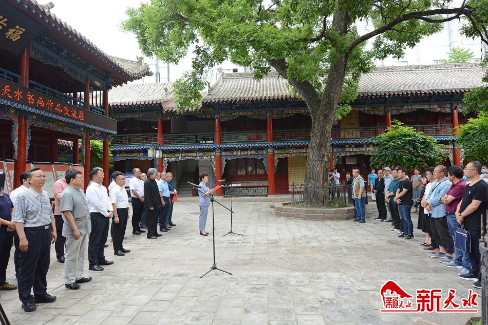 新天水讯【记者 童强】6月20日,由中共天水市委宣传部、中共泰安市委宣传部主办,天水市文联、天水市文化和旅游局、泰安市文联、泰安市文化和旅游局承办的“鲁风秦韵”山东泰安·甘肃天水书画作品交流展在天水市文化馆开展。市委常委、宣传部部长王文东宣布展览开幕。市人大常委会副主任何吉洲,副市长汪小娟,市政协一级巡视员王振宇出席开幕式。