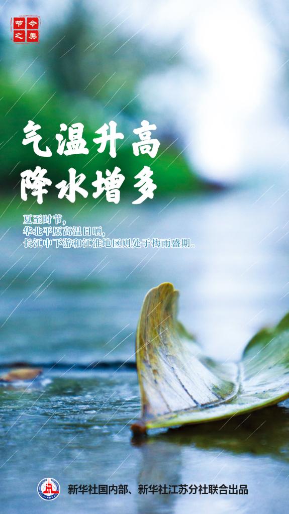 “夏至时节,我国天气的关键词是高温、潮湿和多发雷雨。”南京信息工程大学应用气象学院副教授江晓东说,此时我国除青藏高原和东北中北部地区外,大部分地区已经进入了夏季。华北平原高温日晒,长江中下游和江淮地区则处于梅雨盛期,是全年降雨最多的时段。