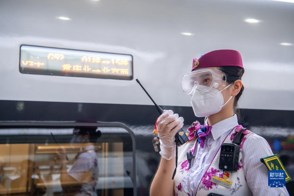 6月20日,郑渝高铁重庆首发G52次列车列车长在站台上等候旅客。