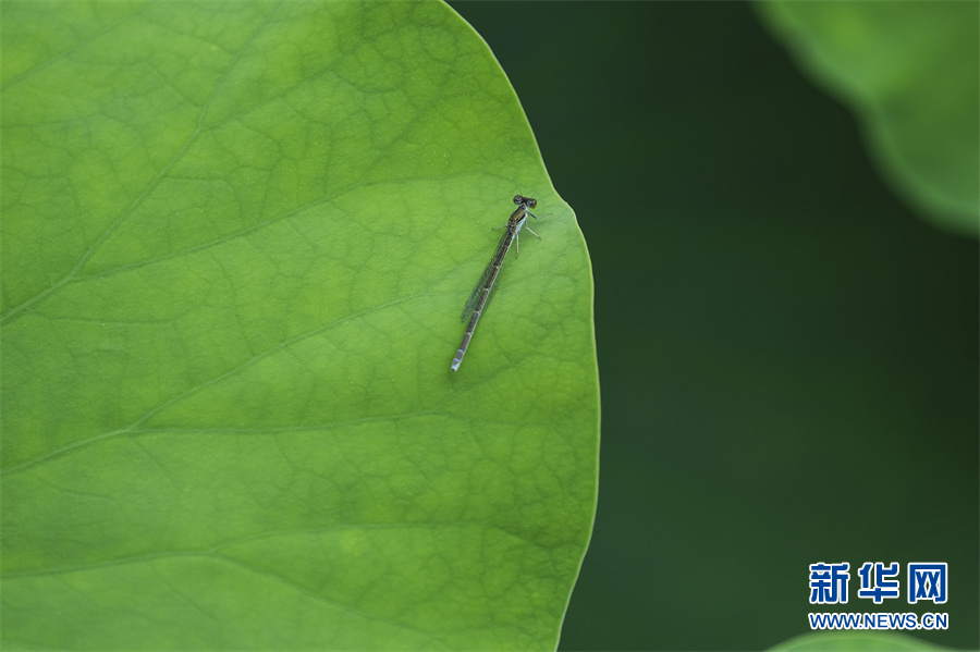 6月20日,安徽省芜湖市陶辛水韵万亩荷花次第盛开,一只豆娘停栖在荷叶上。