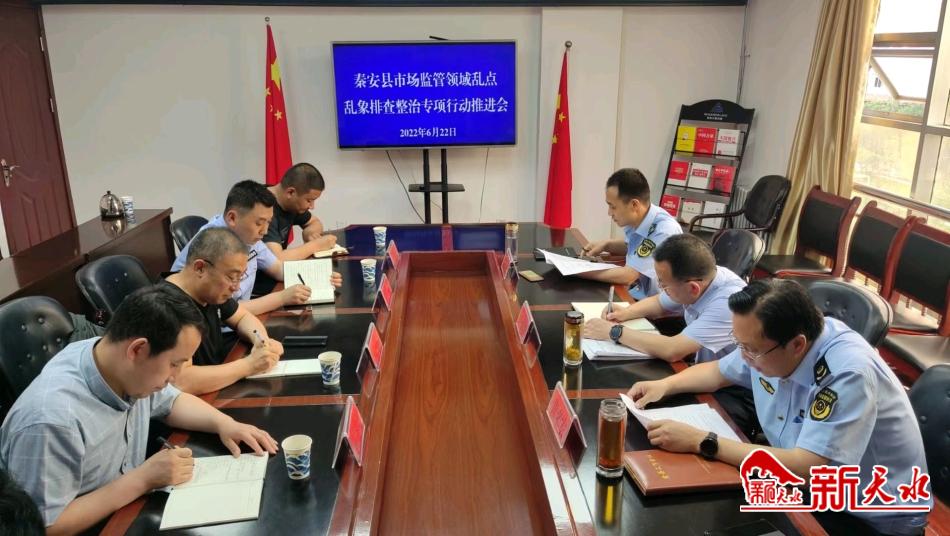 新天水讯【通讯员 王顺芳】6月22日,秦安县市场监管领域乱点乱象排查整治专项行动推进会召开。会议宣读了《秦安县市场监管领域乱象乱点排查整治专项行动方案》,安排部署了下一步工作。县政法委、市场监管局、公安局等相关部门分管领导参加了会议。
