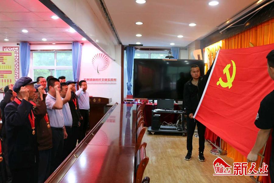 新天水讯 6月22日,清水县松树镇举行“光荣在党50年”纪念章颁发仪式,镇党委书记王文成带领全体党员重温入党誓词,并向老党员颁发了“光荣在党50年”纪念章,感谢他们半个世纪以来为党的各项事业做出的奉献。