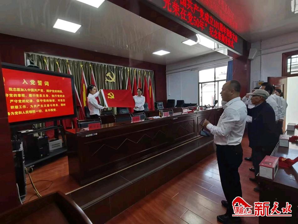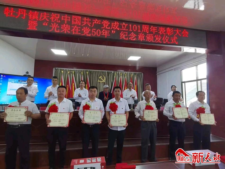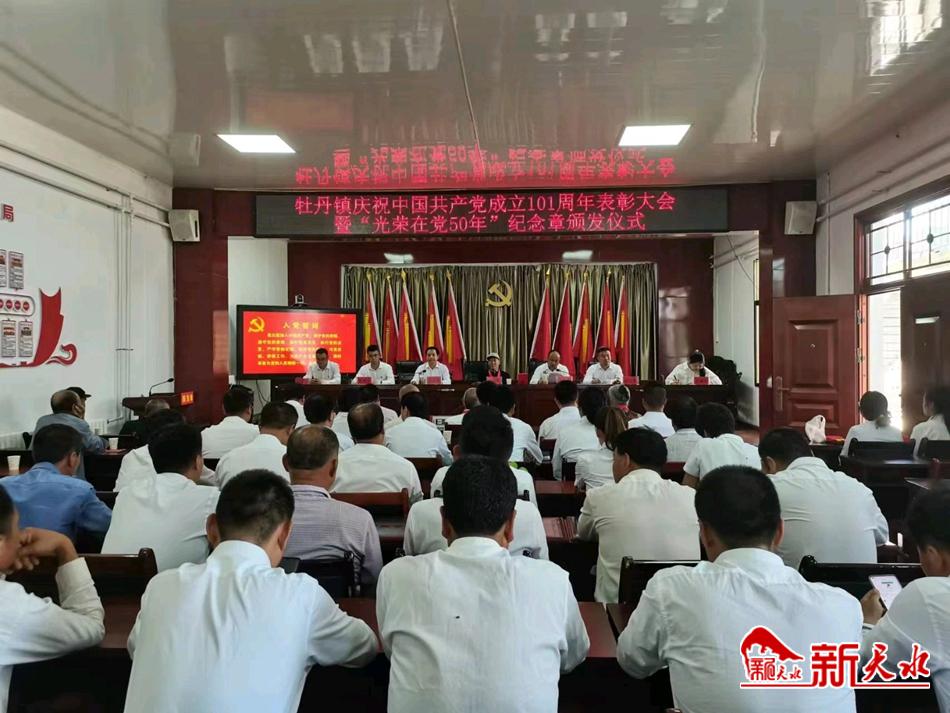 新天水讯【通讯员 王美玲】6月24日,秦州区牡丹镇举行纪念建党101周年表彰大会暨“光荣在党50年”纪念章颁发仪式,镇领导班子成员、各村支部书记、“光荣在党50年”纪念章获得者、优秀党员代表、困难党员代表,预备期满按期转正党员共计90余人参加会议。