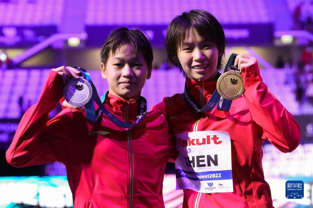 当日,在匈牙利首都布达佩斯举行的2022年世界游泳锦标赛跳水项目女子十米台决赛中,中国选手陈芋汐、全红婵包揽冠亚军。