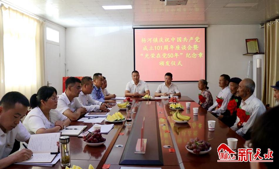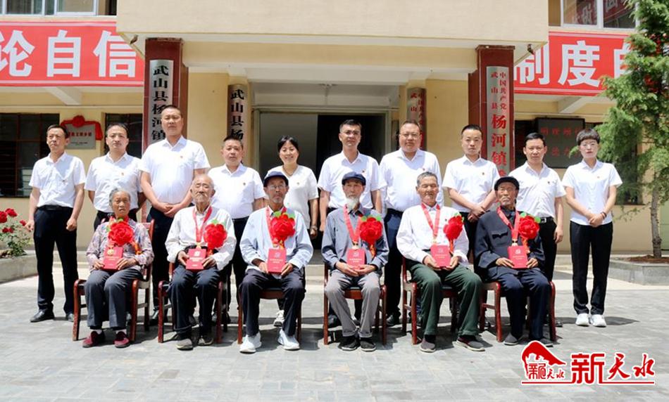 新天水讯 6月27日,武山县杨河镇举行庆祝建党101周年座谈会暨“光荣在党50年”纪念章颁发仪式,为6名在党50周年的老党员代表颁发了“光荣在党50年”纪念章。