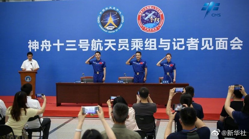 2022年6月28日下午,神舟十三号航天员乘组翟志刚、王亚平、叶光富返回 74 天后,在北京航天城与媒体记者见面。这是神舟十三号航天员乘组返回后首次与媒体和公众正式见面。